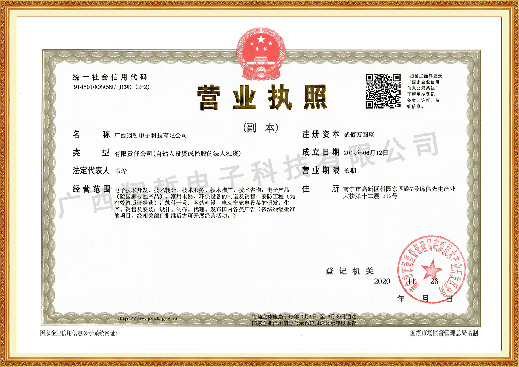 公司地址:南宁市高新区科园东四路7号远信光电产业大楼第十二层1212号